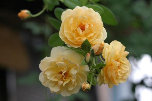 ![]() こちらは鉢植えのミニバラ 「サンレモ」 3~4cmの小さな花ですが、花が途切れることなく良く咲きます。 オレンジ色の可愛いバラです。 ![]() これは「グラハム・トーマス」(ER)。香りも花の存在感も素敵なイングリッシュ・ローズです。 ![]() 背の高さは3mくらいになり、つるバラとして扱います。夏のつるバラはシュートを高く伸ばして形が崩れますが、来年の花を咲かせる幹になるので大事に伸ばさなくてはなりません。横に誘引すると枝分かれして幹が長くなりません。2階の窓から良く見えるくらいに伸びて先端に花を付けています。 ![]() こちらは「アンジェラ」(CL) 春のアンジェラは花のじゅうたんにように見事に花をつけますが、夏はあちこちにポツポツと咲くだけで、春の見事さには比べようもありません。 つるバラは無理に四季咲きを探さなくても、春の一季咲きでも花の形や香りなどが好きなバラを選んだほうが良いようです。
