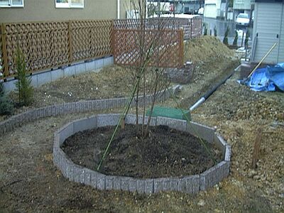 ![]() ついでに「スノーホワイト」という細いコニファーと「きんせんか」を植えました。このコーナーは感じが良くなってきました。 ![]() ヤマボウシを植える 2001.3.9買ってきたまま植え穴に水が溜まるので植えられなかったヤマボウシを植えました。植え穴は大きめに深さ1m、直径1m20cmくらい掘りました。掘った土の中で粘土で無い部分の石を取り除いて苦土石灰を混ぜた後、腐葉土と牛糞を混ぜて土を作りました。 ![]() 植え穴の水抜き用の枡の様子です。いくら掘っても粘土質に変わりが無いので強制排水をするつもりです。 水抜きの様子はこちらで ![]() で、植付け完了。まだ土が足りません。奥に積んである土をふるいに掛けて腐葉土を混ぜて植え土を作らなくては。丸いレンガで周りより20cmくらい土を盛り上げて、高く植えて少しでも水はけを良くします。土が入ったら花でも根元に寄せ植えするつもりです。 ![]() コノテカシワ 2001.4.1