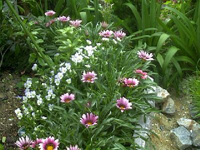 花は一休み 2002.6.8春から夏へ植え替えたばかりで、まだ寂しいです。 ![]() ここもまだまだ。でも葉の色が違う常緑樹を植えて、花がなくてもそれなりに楽しめるようになっています。 ![]() バラも終わってしまいました。今年のシュートを生育中。 ![]() スモークツリーが最盛期です。 ![]() 日陰の庭はミムラスが元気です。 ![]() ハーブガーデンは良い香りを楽しむ庭です。 ![]() ガザニアとワスレナグサ ![]() 青い花 特集今朝、庭に咲いていた私の好きな青い花です。結構沢山、青い花があるもんですね。 アジサイ