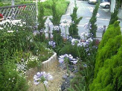 ![]() ちょっと中に入って見ましょう。アガパンサスが長い間きれいに咲いています。 ![]() もう7月なのにシャスターデージーが盛りです。シャスターデージーって春の花だよねー。 ![]() 木のアーチ