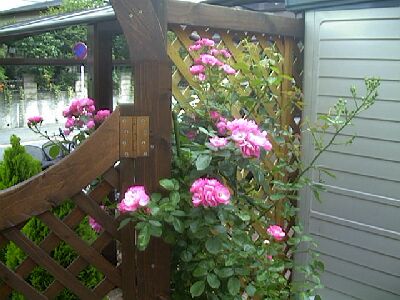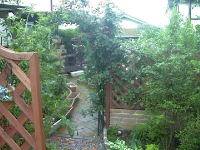 ![]() アンジェラは花つきが良いし、四季咲き性が強いので早くアーチの上まで伸びて欲しいです。この間「シュートには花を咲かせない」とツボミがびっしりついて先端を切ってしまったのですが、すごく後悔しています。 ツル薔薇は伸びたいだけ伸ばしてやれば良いみたいですね。 ![]() テディベアの返り咲き 最初はテラコッタ色だったのですが、ピンクになってきました。 ![]() アーチをくぐって奥へどうぞ