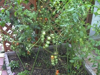 ![]() トレニアの鉢植えがレンガの柱に乗せてあります。 ![]() インパチェンスの鉢植えもあります。 ![]() ミニトマトがびっしりと。これで苗は2本ですよ。 ![]() 薔薇のアーチ