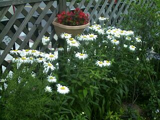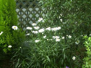![]() で、シャスターデージー ![]() こっちはシャスターデージーとマーガレット ![]() これで7月の庭のご案内はおしまいです。 |