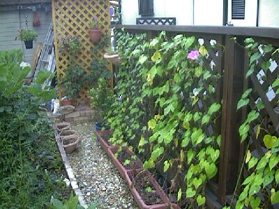 ![]() ホテイアオイは2株買ってきたのがどんどん増えて7株に。メダカは10匹買ってきたのが子供を生んで、今では100匹くらい(たぶん)います。 ![]() デッキのてすりのアサガオ