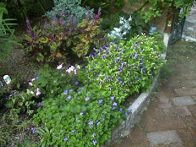 ここは日陰の庭で半日陰が好きな花が植えてあります。