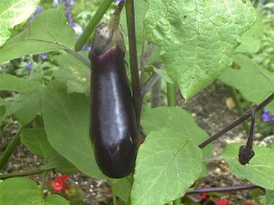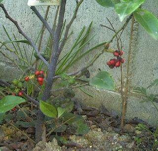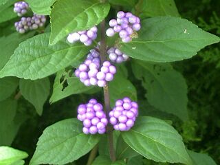 鉢植えを庭に下ろしたら大きくなりました。虫に食われて大変でしたがなんとか紫の実が色づいてきました。