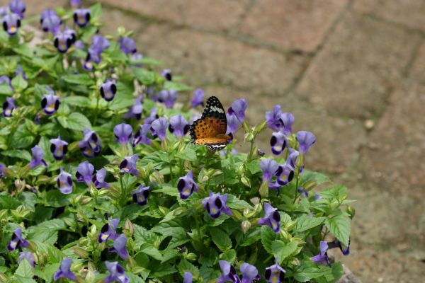 トレニアに蝶が来ています。蜜を吸うのは良いけど卵を産み付けるのは駄目ですよー。