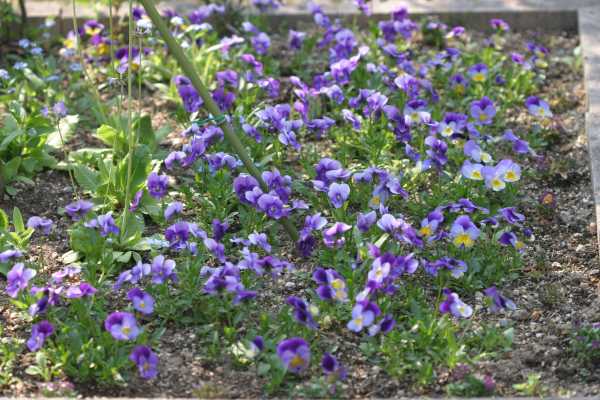 四角い花壇一面に植えたビオラ