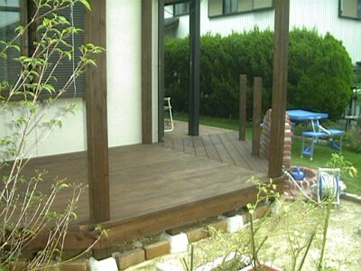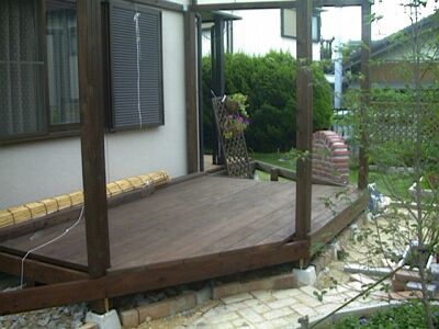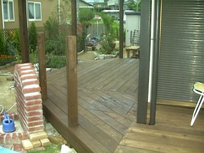 うーん。結構広いデッキになりました。フェンスを付けるとまた狭く感じるのでしょうけどね。