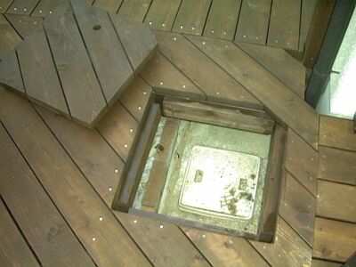 第1期と第2期のつなぎ部分のデッキ張りが完成しました。斜め張り、点検口と面倒な部分があって色々と細かく工作しました。点検口やフェンスの柱など切り欠いた部分の受けに端材を取り付ける必要があって面倒でした。インパクトドライバーでなかったら出来ない工作ですね。