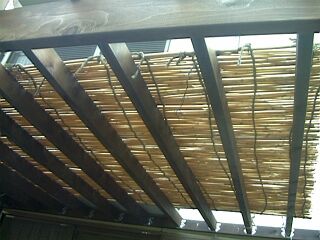 とりあえず、日除けに よしず を乗せました。日が当たらないときは暗いので端のひもを引っ張ってたたみます。