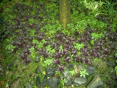一本だけ買って来て隣との境界のブロック際に植えたら、境界に沿って根を伸ばして殖えました。 適当に葉をむしってやると綺麗になります。 |