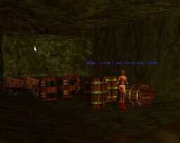 ![]() ポイント3 樽 と荷車 | この樽から橋を渡らずに左壁伝いに行くとポイント1の橋の下へ出ます。 |