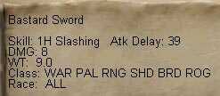 | Bastard Sword | Normal | 8 | 39 | 0.205 | 9.0 | 13p5g7s5c | |