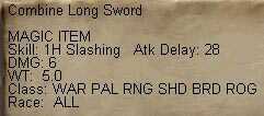 | Long Sword | Rusty | 5 | 36 | 0.139 | 7.5 | 13p5g7s5c | |