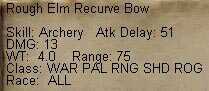 | Short Bow | 6 | 40 | 3.5 | 50 | 4p0g7s3c |