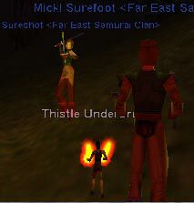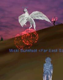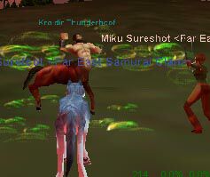 PAWの外でキャンプしていたらQuillmaneというNPCがon Track。白いペガサスでした。レベル35のMikuから青。さっそく、ちなしてやろうとしたら、外人さんCLE?とKS合戦。CLEにゃかなわないやと思ったのですが、なんとCLE死亡。ええ、もちろんおいしく頂きました。