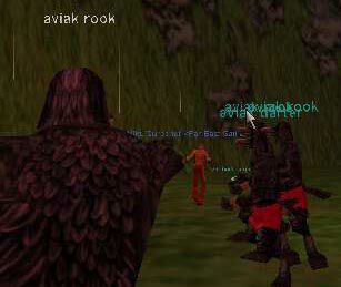 名前付き Aviak 残り2BUBLの弱ったのを20台フルパーティでやっと 実は、商人なんです。木の上の一番大きなところに居ます。 ただし、Half Elfは相手にしてくれませんでした。 DRUならOKらしいです。 |
