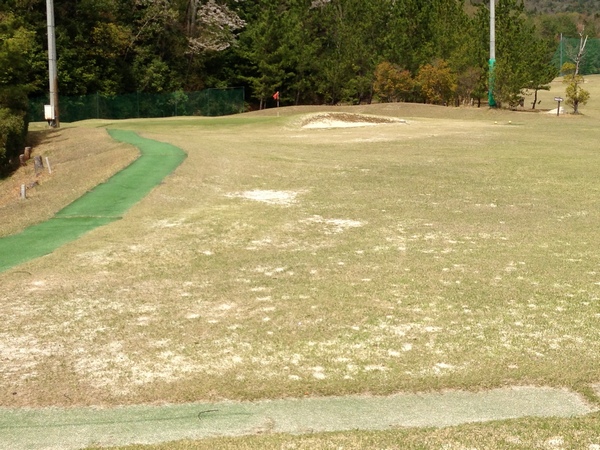 HWをハーフより少し小さくと振ったらひどいダフり。orz 加減すると腰の動きが足らなくてダフるというパターン。あらかじめ左体重にするとかオープンに構えるとか、素振りで再下点を確認してボール位置を決めるとかやるべきことはあったよね。