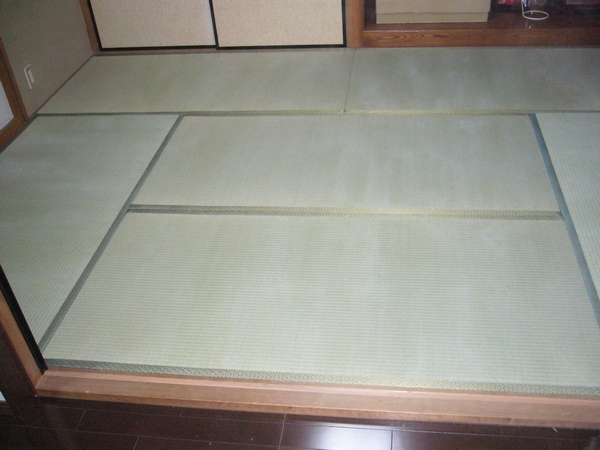 13000円と言っていたのをサービスで1200円、縁も500円をサービスで0円にしてもらいました。でも、「ダニ防除シート」というのを畳床と畳表の間に入れるとダニやカビの心配が無いよ、1枚2000円のところ全部やるなら1500円でと言われて、結局13500円/畳になりました。美くさ畳のHPからリンクしているYahooショッピングでは14700円/畳になっているので、安かったのかな。