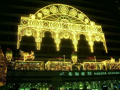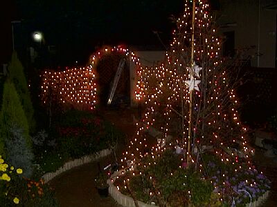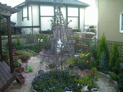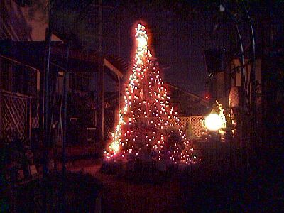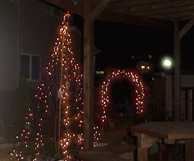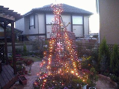● Xmas ツリーを作りました ● すごくきれいです。少し離れた場所で見ると電球の少なさ(700球)が目立たなくて良いです。 この写真はバラのアーチの外からです。 |